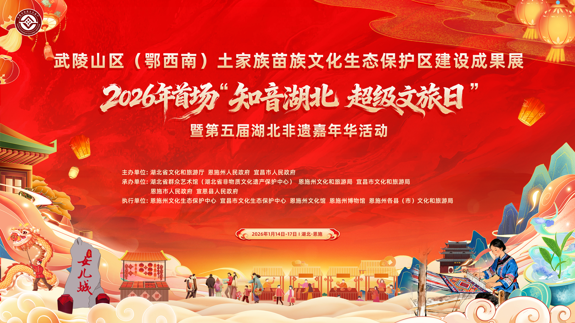 武陵山区(鄂西南)土家族苗族文化生态保护区建设成果展·2026年首场“知音湖北 超级文旅日”暨第五届湖北非遗嘉年华活动在恩施州举行