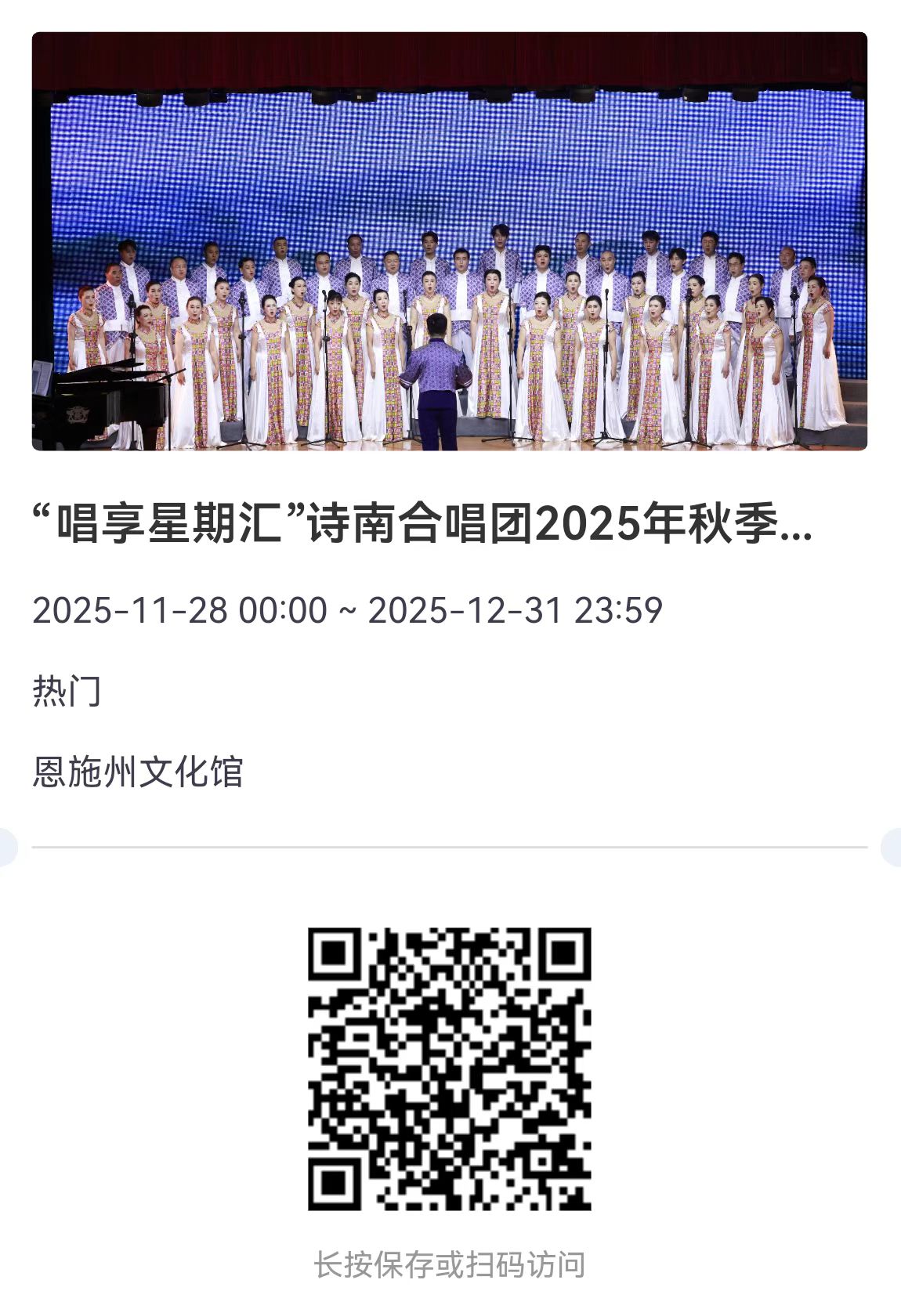 恩施州诗南合唱团自成立以来多次参与州内外文艺演出、赛事等活动,以“传唱经典旋律、弘扬民族文化、凝聚音乐热爱”为初心,用歌声传递恩施山水之美与人文温度,是音乐爱好者交流共进的温馨家园。