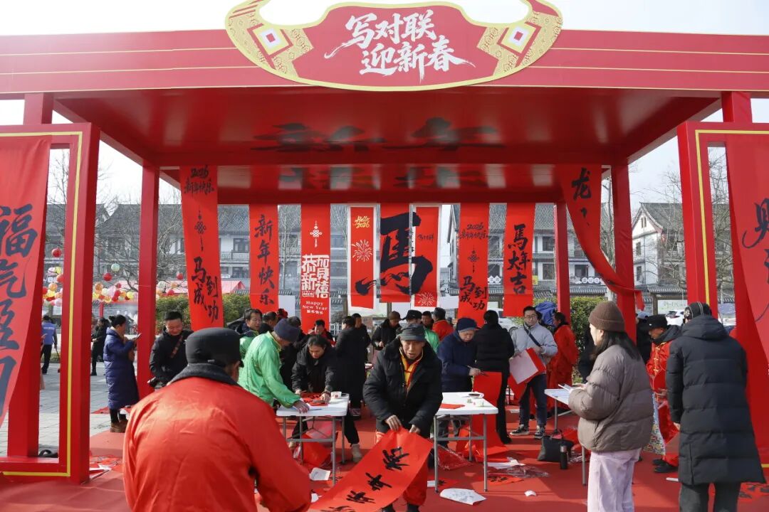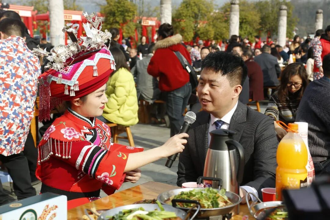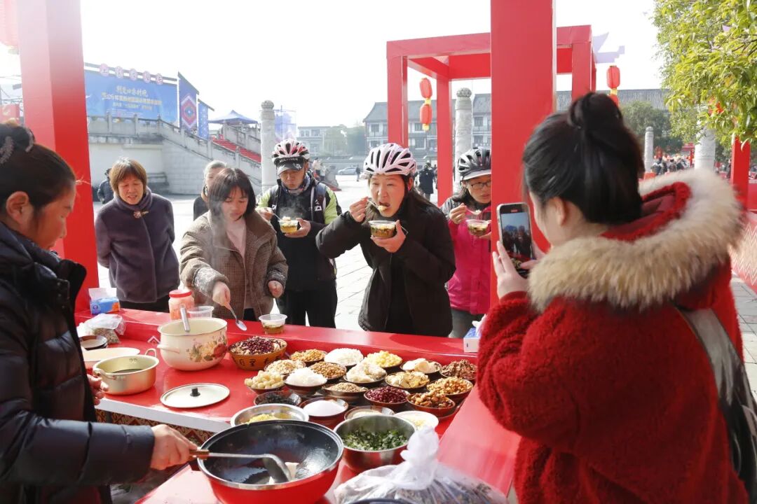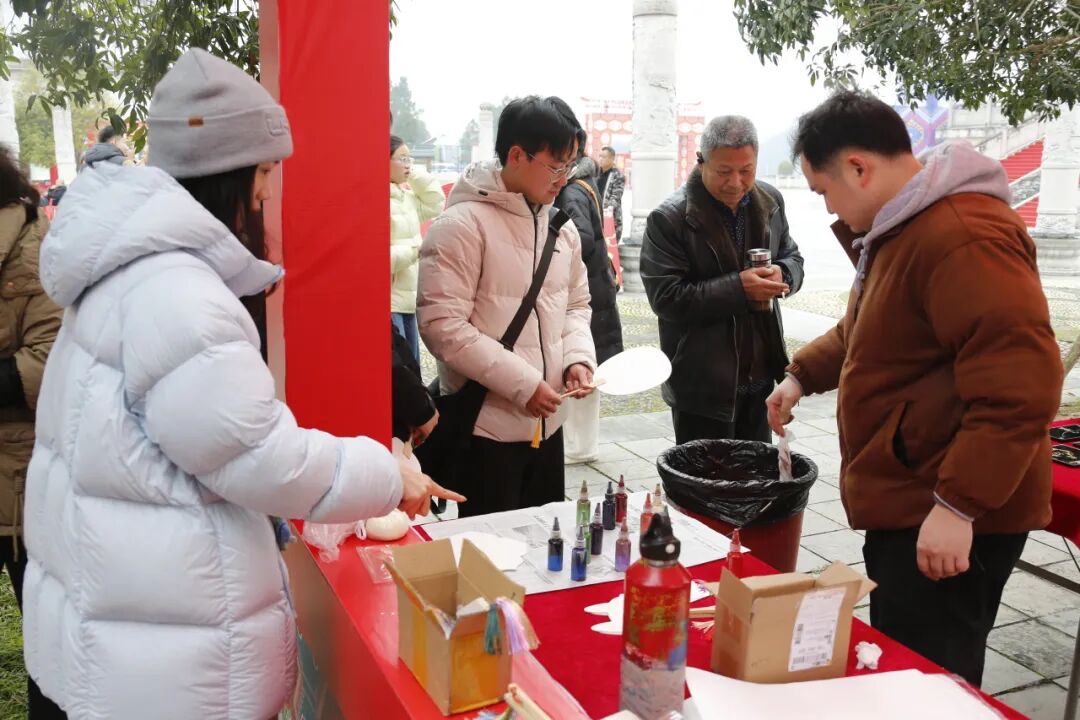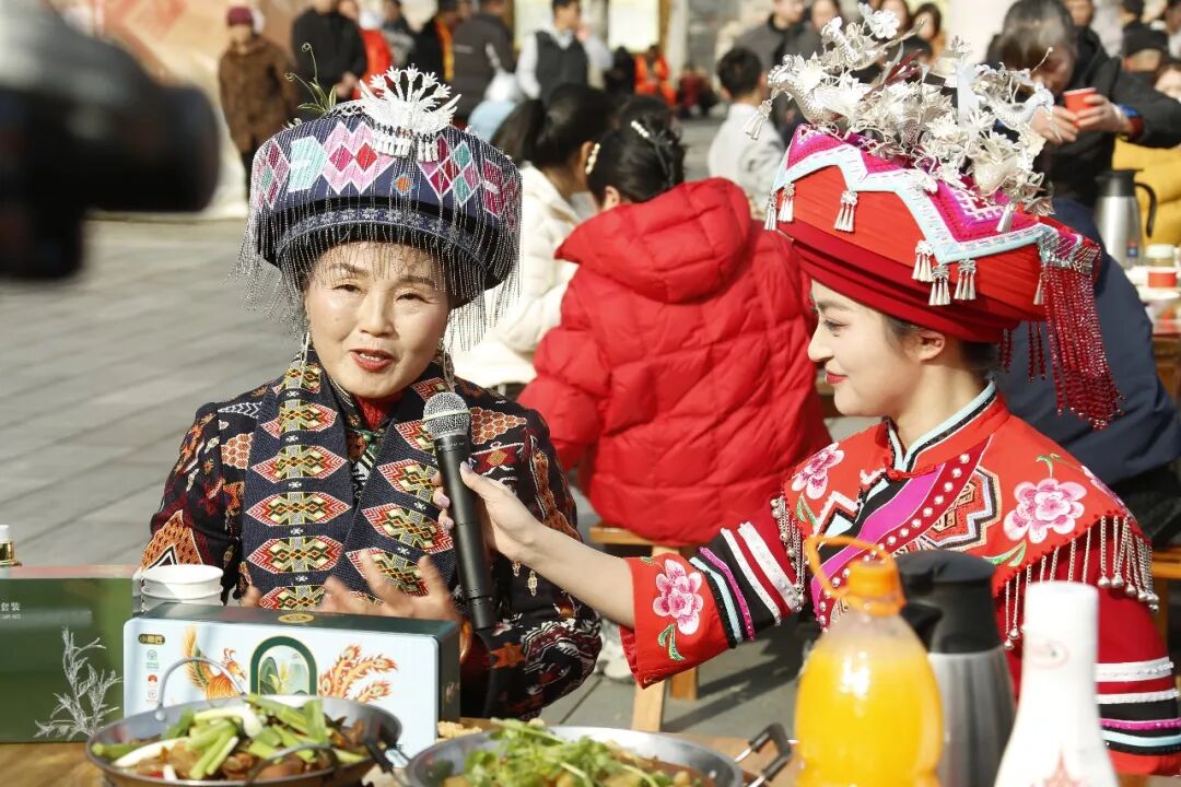 活动当天,仙佛石窟的土家年味大集率先开市,成为最具人气的聚集地。年货采购区内,来凤藤茶、土家腊肉、凤头姜等地理标志产品琳琅满目;年俗体验区中,西兰卡普织锦、咚咚喹吹奏、写春联等非遗展示吸引游客驻足互动;风味小吃摊前,油茶汤、炸油粑粑香气四溢,多款特产成为“爆款”。随后的年趣游园会及传统刨汤宴,更让游客在互动游戏与团圆宴饮中,感受到浓厚的土家“过赶年”氛围。
