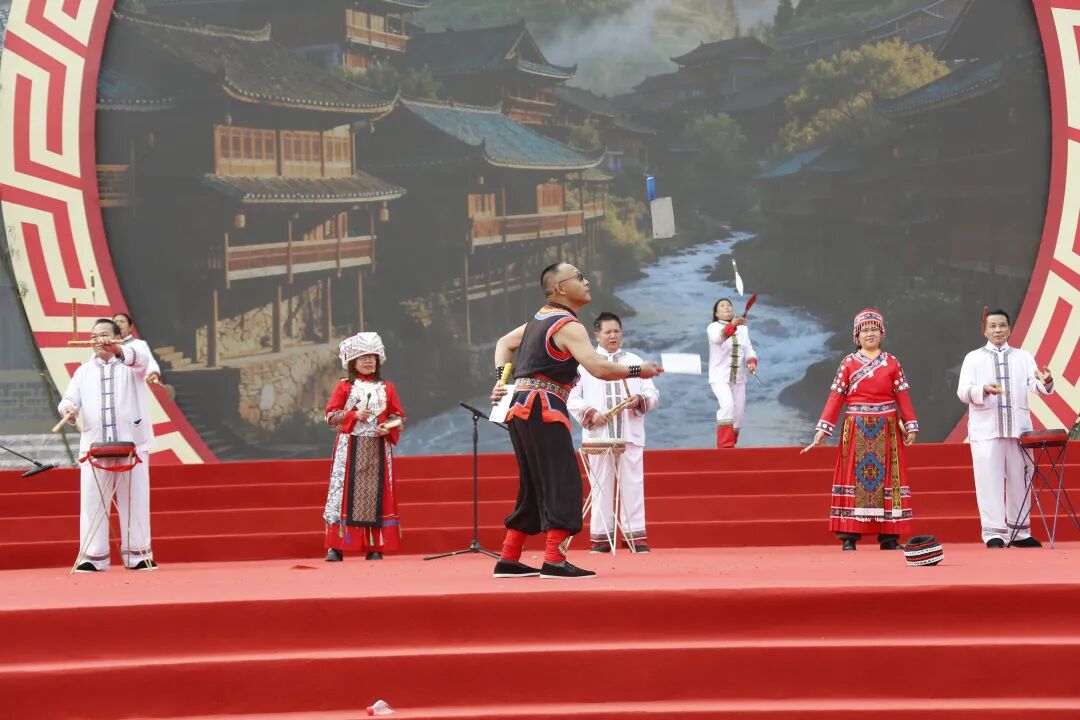 下午的主舞台文艺演出《土家团圆年》分为“年风・传承”“年俗・乡情”“年欢・共舞”三大篇章。节目涵盖村歌联唱、三棒鼓新编、南剧选段、地龙灯祈福等15个精品项目。